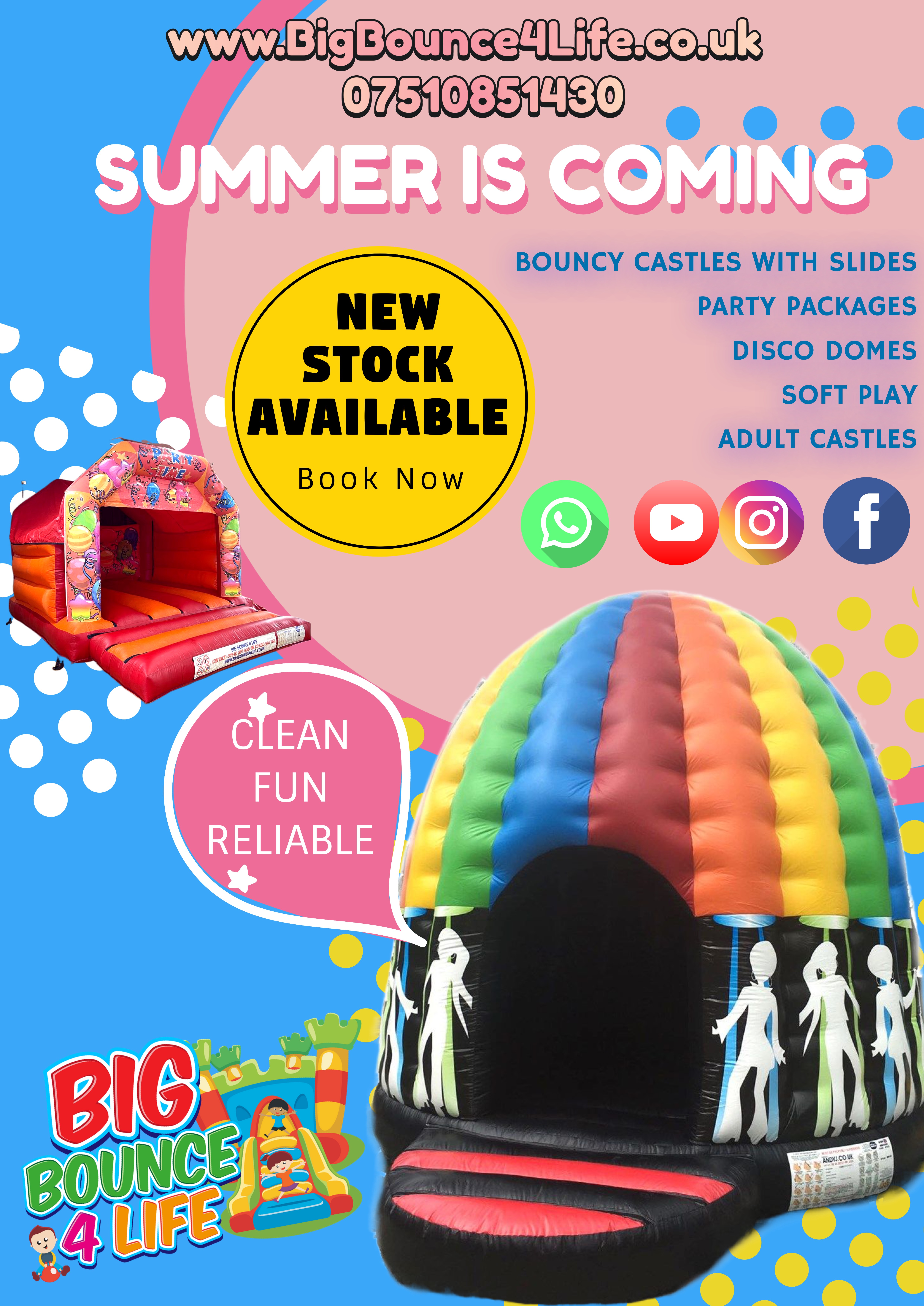 We understand that parties may run over so you may require the Bouncy Castle longer than the hired end time, don’t hesitate and call to speak to one of our friendly staff to see what arrangements can be put in place on 07510851430.