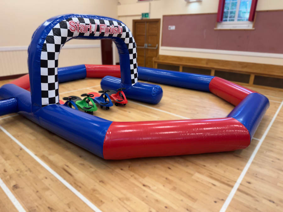 Our Didi Car Race Track 15ft x 20ft brings high-speed fun and friendly competition to your party or event. Perfect for little racers, this inflatable track provides a safe and exciting space for children to zoom around, race their friends, and burn off some serious energy!