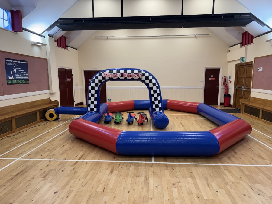 Our Didi Car Race Track 15ft x 20ft brings high-speed fun and friendly competition to your party or event. Perfect for little racers, this inflatable track provides a safe and exciting space for children to zoom around, race their friends, and burn off some serious energy!
