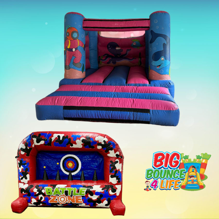 Don't miss out on this incredible package that combines the thrill of bouncing with the excitement of a Nerf shoot out. Book our Underwater Low Roof 12ft x 12ft Bouncy Castle & Nerf Shoot Out Package today and make your event an unforgettable experience for everyone!