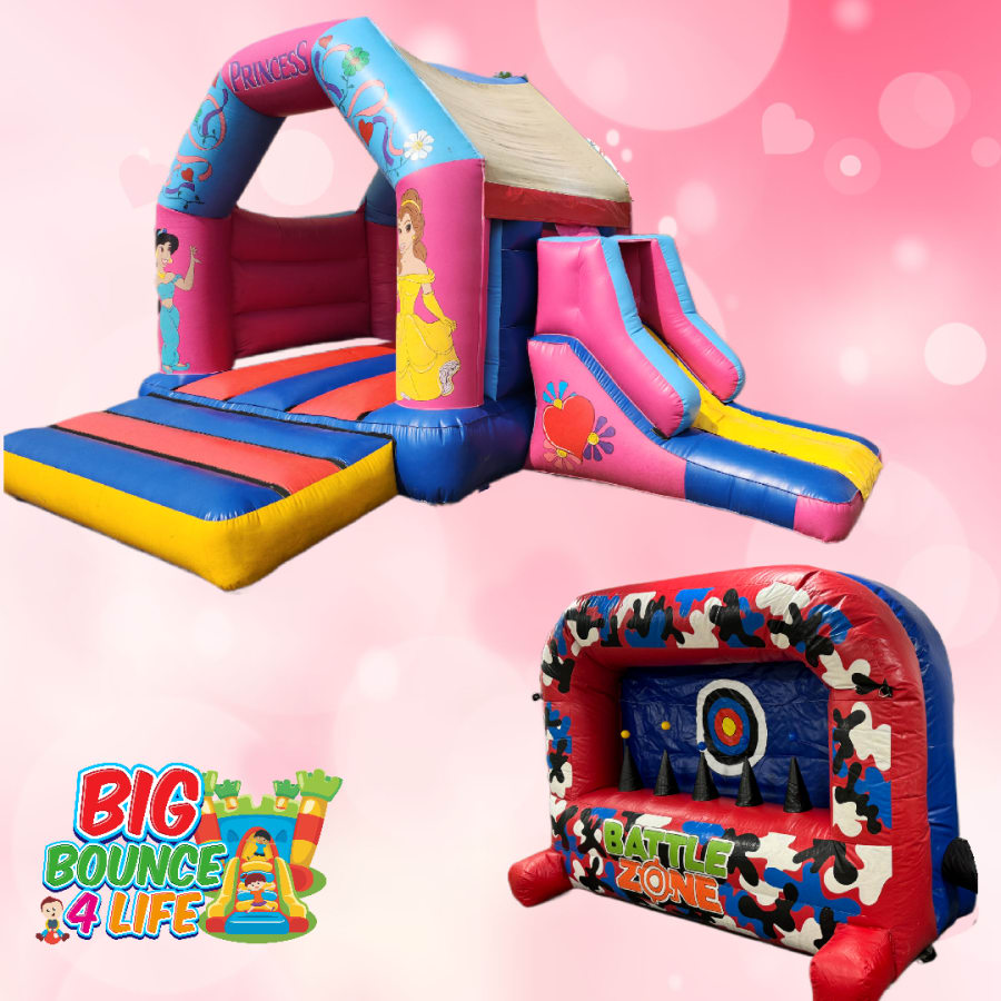 🎉 Don't miss out on the opportunity to make your little princess's dreams come true. Book the Princess Combi Slide Nerf Shoot Out Package today and create an unforgettable fairytale adventure!