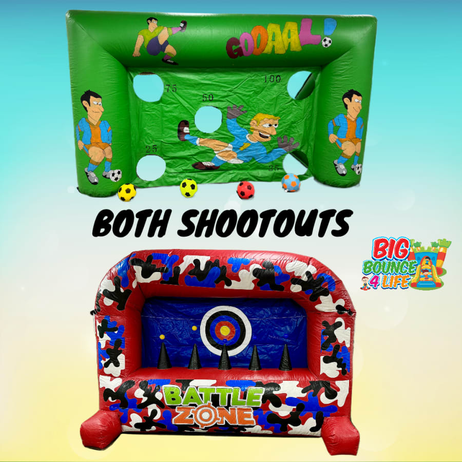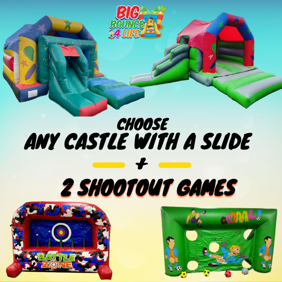 Looking to take your party to the next level? Our Entertainment Party Package has got you covered! With a combination of fun and excitement, this package includes ANY of our bouncy castles with a slide, along with the thrilling Nerf Shootout and Football Shoot Out games.